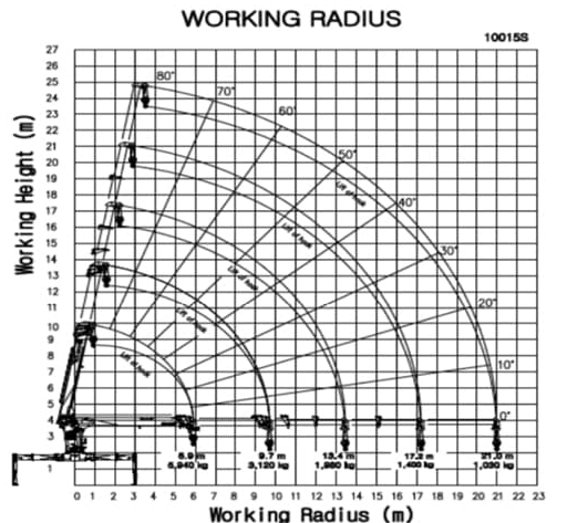 Biểu đồ sức nâng tầm với cẩu tự hành Huyndai Everdigm HLC-10015:
