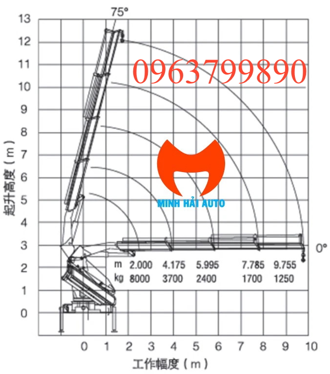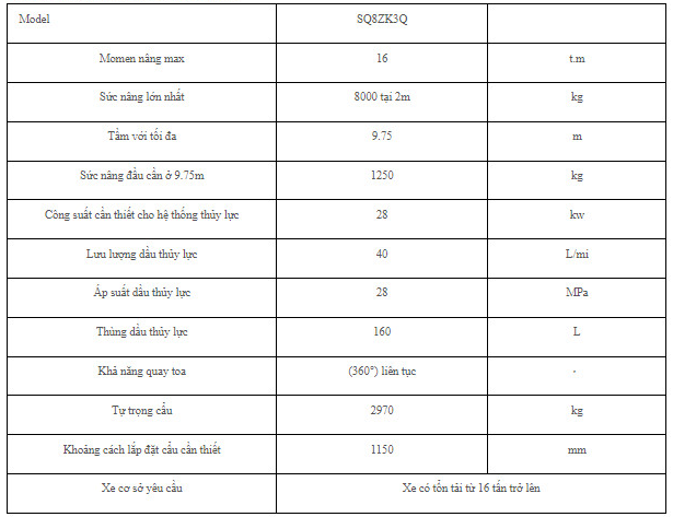 Thông số kỹ thuật chính của cẩu gấp 8t XCMG
