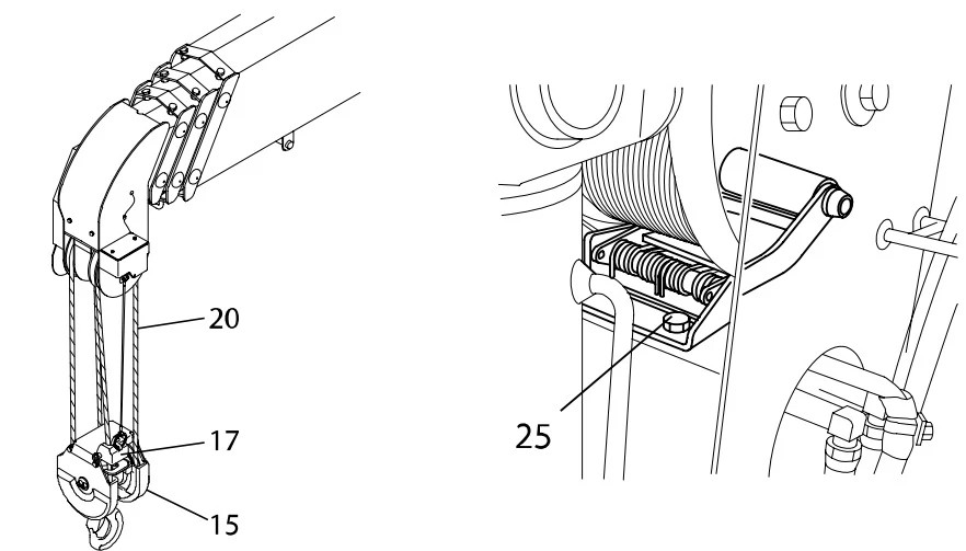 Trong khi, cẩu gấp khúc trang bị tời nâng là lựa chọn thêm và phải trả thêm phí, thì đây lại là trang bị cơ bản trên cẩu thước. Cụm pully móc câu sẽ dễ dàng vận hành và chắc chắn hơn trên cần ống lồng, do không có độ võng từ cần gấp khúc. Minh họa dưới đây cho thấy ưu điểm của cụm pully: